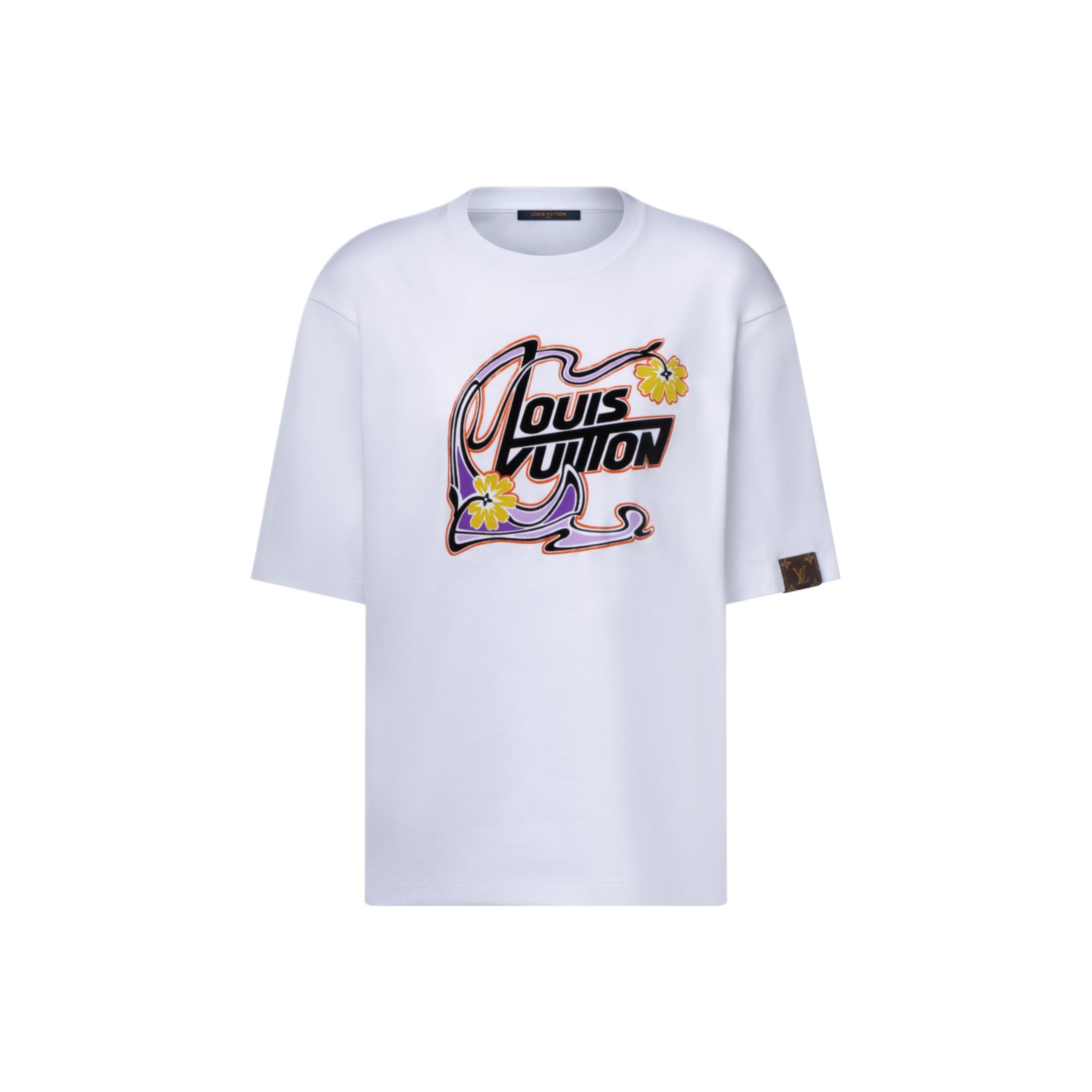 LOUIS VUITTON Pullover Leher Bulat Motif Bunga Lengan Pendek Gaya Art Nouveau dengan Logo FW25 Ukuran Reguler, Unisex
